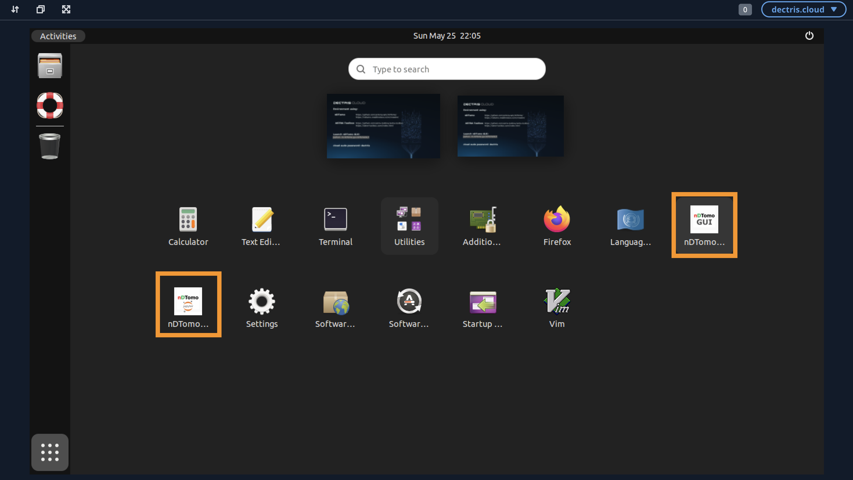 python -m nDTomo.gui.nDTomoGUIThe GUI can also be started from the Ubuntu Applications menu by clicking the nDTomo GUI shortcut icon.