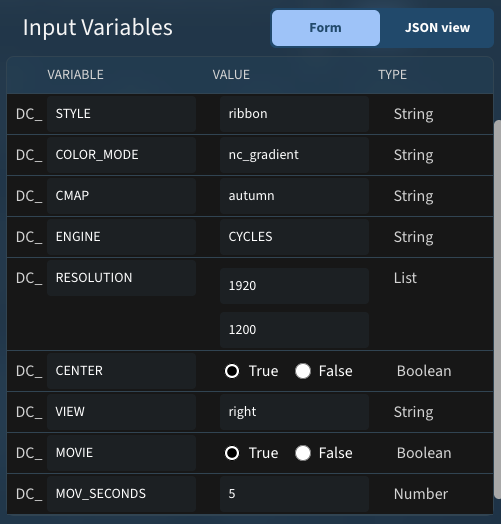 - DC_STYLE: MolecularNodes rendering style. Can be: cartoon, ribbon, surface, spheres, sticks, ball_and_stick