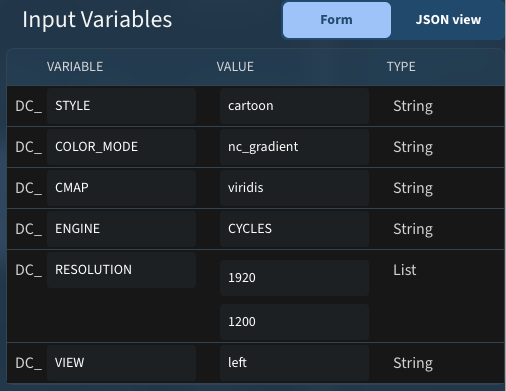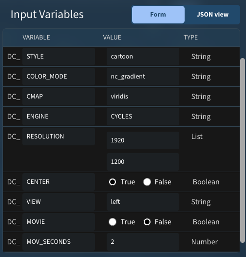 - DC_RESOLUTION: Resolution in pixels of the rendered image: width and height